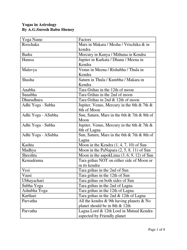 Raja Yoga & their effects - Free astrology predictions Raja Yoga in Kundli is considered very auspicious which will help the native achieve all the success in life. It lets a native have a life of 'Raja' or King, which means have power, luxuries, authority, success, etc. But what causes 'raja yoga' in someone's horoscope? What Does Raja Yoga Mean In Astrology? (Question) - Yoga in Ashland and ... rajasthan yoga (also known as raja yoga or raja niyama) is a comprehensive yoga system that addresses issues such as the refinement of human behavior and personality through the practice of the yamas (restraint) and niyamas (disciplines); the attainment of physical health and vitality through the practice of asanas (yoga postures) and pranayamas … Raja Rani Yoga in Vedic Astrology Meaning & Effects Meaning & Effects of Raja Rani Yoga in Vedic Astrology Horoscope. When ascendant lord is strong enough and most of other planets occupies angles, trines or in own house or in exaltation signs, then Raja rani yoga sets to get formed in birth chart. This yoga gives overall happiness in terms of wealth, steady assets or in form of luck. Raja Yoga Karaka - Holistic Vedic Astrology What is yoga in astrology? Yoga simply means union. It does not mean anything exceptional by itself but there are some yogas that are quite powerful like the Pancha Mahapurush Yogas. For certain ascendants/Lagna a single planet becomes a Raja Yoga Karaka. It is when the same planet owns a Quadrant house (1,4,7,10) as well as a Trine (1,5,9).