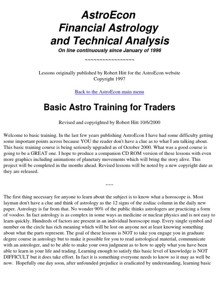 Amazon - A Trader's Guide to Financial Astrology: Forecasting Market ... Look to the stars for a whole new approach to market cycle forecasting. A Trader's Guide to Financial Astrology is the definitive guide to trading market cycles based on astrological data. Written by a highly-respected technical analyst, this book makes the connection between the movements of planets and the volatility of the market.