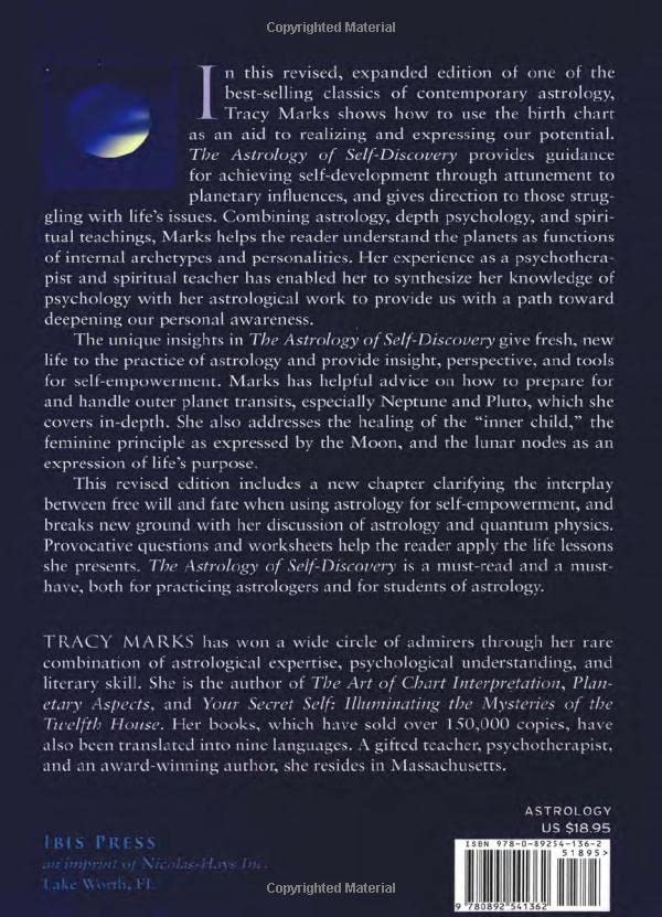 The Astrology of Self-Discovery Paperback - September 1, 1985 In this guidebook Tracy Marks shows how to use astrology in just this way - as an aid to realizing and expressing one's potential. She explains how we can facilitate our own growth, as well as resolve our inner conflicts, through a constructive understanding of the deeper personal issues revealed in the birth chart. Print length, 278 pages,