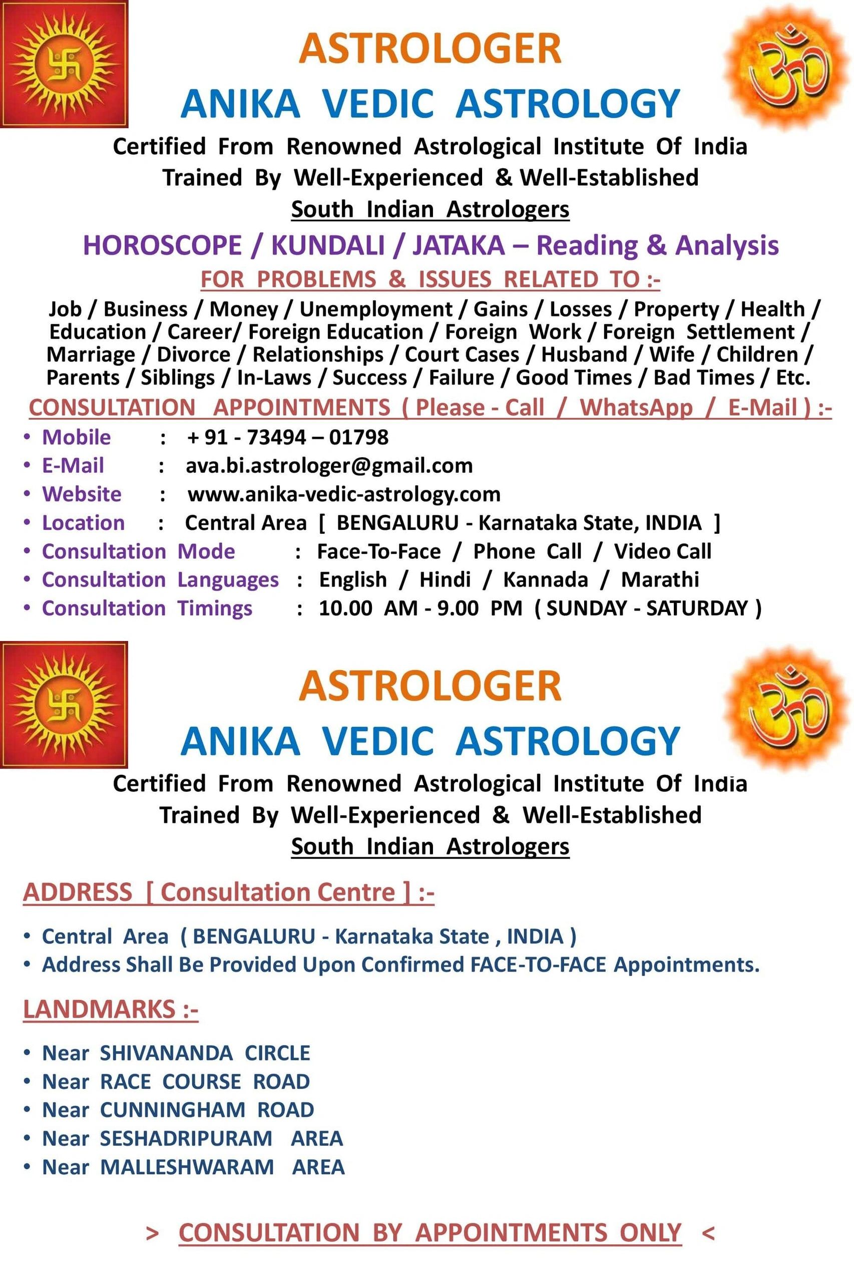 Vedic Astrology Consultation | Om Sri Sai Jyotisha Vidyapeetham Here in this service you can choose 15 min or 30 min phone consultation based on your need. You can extend time if you have more questions or more issues to discuss. You will get this service within 48 hours after confirmation of your payment. Contact Phone number and other details will be informed once after receiving your order.